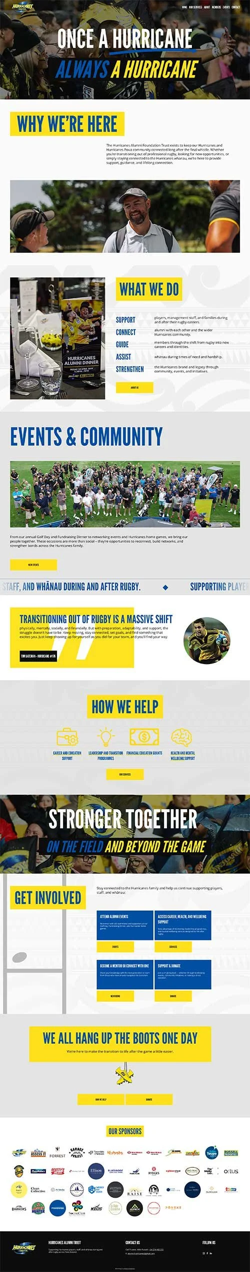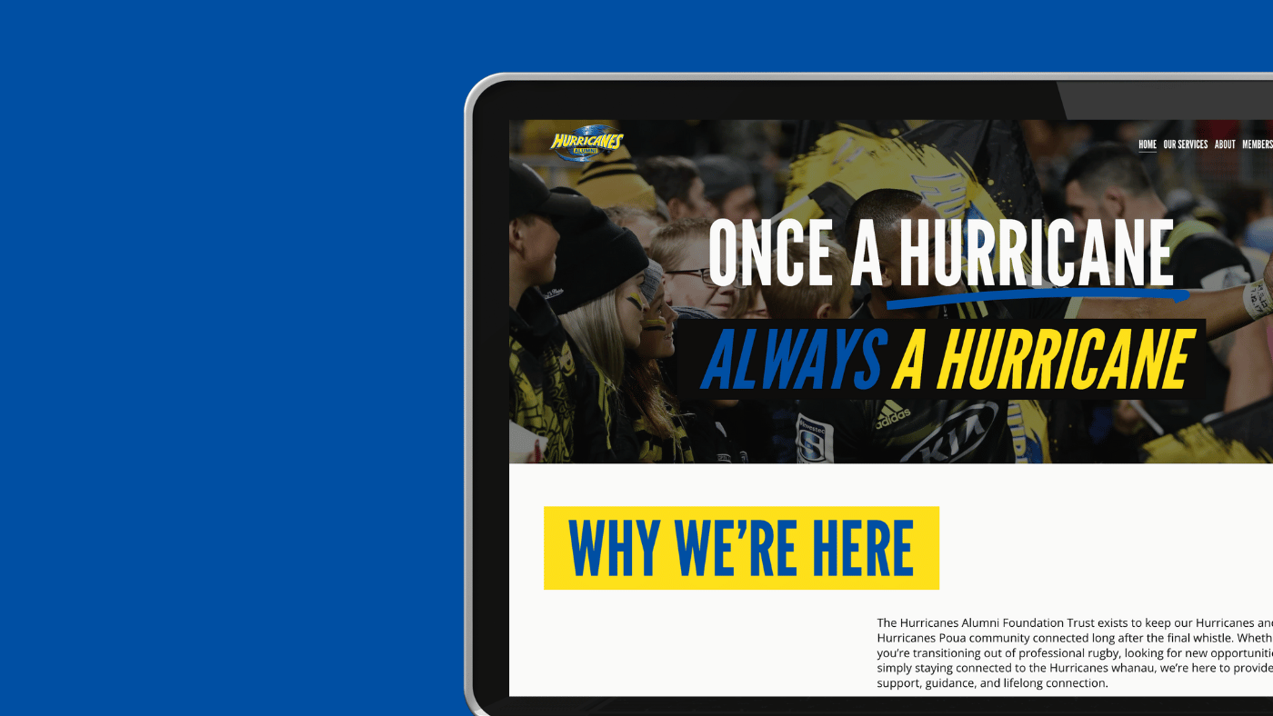The Hurricanes Alumni Foundation had a homemade website that no longer reflected the professionalism or energy of the organisation. Armed with the content from their existing site, a handful of images, and a PDF booklet outlining their work, I completely rebuilt their website from the ground up β handling both the copywriting and design.