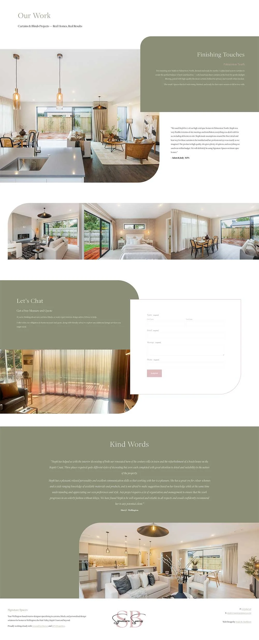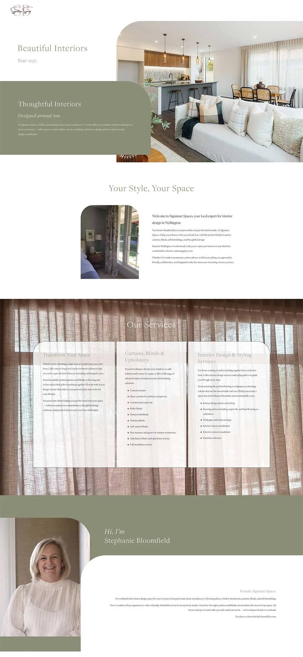 I worked with Steph, an established interior designer who had built her business through word of mouth, to create her first online presence. She wanted a simple one-page website to showcase her work, with the flexibility to grow it over time. Thatβs the beauty of a one-page siteβyou can start small, get the design just right, and add more pages later as your business evolves.